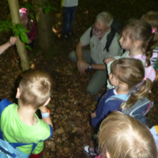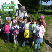 Bei herrlichstem Ausflugswetter erlebten die Vorschulkinder am 14. Mai 2024 einen Bornekamptag der ganz besonderen Art. Am Bornekamptal angekommen, trafen die Kinder nämlich auf den Förster Winni. In einem Begrüßungskreis stellte sich jeder von ihnen mit seinem Vornamen und einem Waldtier mit gleichem Anfangsbuchstaben vor. So wurden beispielsweise Libelle Lena, Hadrian Hase, Frieda Fuchs und auch der Förster Waschbär Winni begrüßt. Auf der Wiese gab es schon viele kleine Käfer, Raupen und andere Insekten zu entdecken, die die Kinder mit den Becherlupen genauer beobachten konnten. Auch einige Pflanzen wurden ausführlich angeschauten. Gemeinsam mit dem Förster ging es aber schon bald ins Unterholz des Waldes. Mutig überquerte die Gruppe hierzu sogar einen steilen Bachlauf. Zum Glück blieben alle Füße trocken. Weiter zwischen den Bäumen entdeckten die Kinder Rehbetten, und bekamen gezeigt, an welchen Bäumen die Rehböcke schon ihre „Hausnummer“ markiert haben. Es wurden Rehspuren gesucht und viele Hinweise entdeckt, die darauf schließen ließen, dass in diesem Waldgebiet einige Rehe unterwegs sind. Nach einer kleinen Stärkung suchte der Förster einen geeigneten Ort, um ein gemeinsames Spiel zu spielen. Jeweils zu zweit spielten die Kinder „Baum-Memory“. Dabei bekam immer ein Kind die Augen verbunden und wurde von seinem Partner-Kind zu einem Baum geführt. Das Kind mit den verbundenen Augen sollte nun seinen Baum ertasten und befühlen – Wie fühlt sich die Rinde an? – Gibt es besondere Merkmale, z.B. Zweige, Astlöcher, Knubbel, Risse? Sie sollten den Baum mit den Armen umschließen, um einzuschätzen, wie dick er in etwa ist.